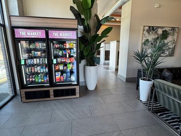 In your lobby, near your mailboxes or in your common areas, our markets are available 24/7/365 in bad weather, at late hours; without residents needing to leave the property.